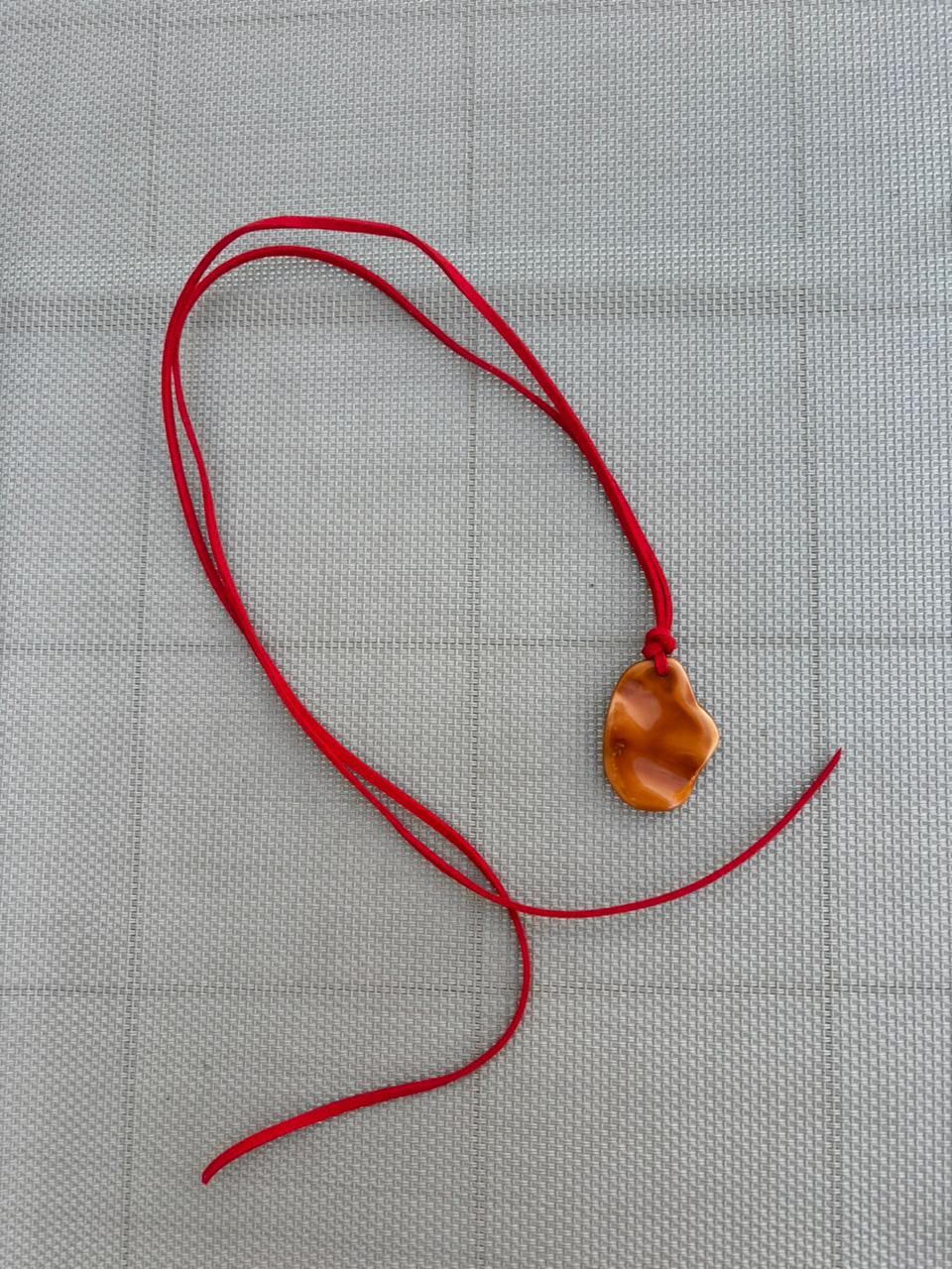 Collar con dije de resina y tira de cuero.