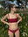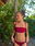 Corpiño tipo top straples con doble tira y frunces regulable. Bombacha semi vedetina con tiras para atar.