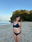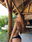 Corpiño tipo top con argollas de carey y tiras para atar. Bombacha semi vedetina.