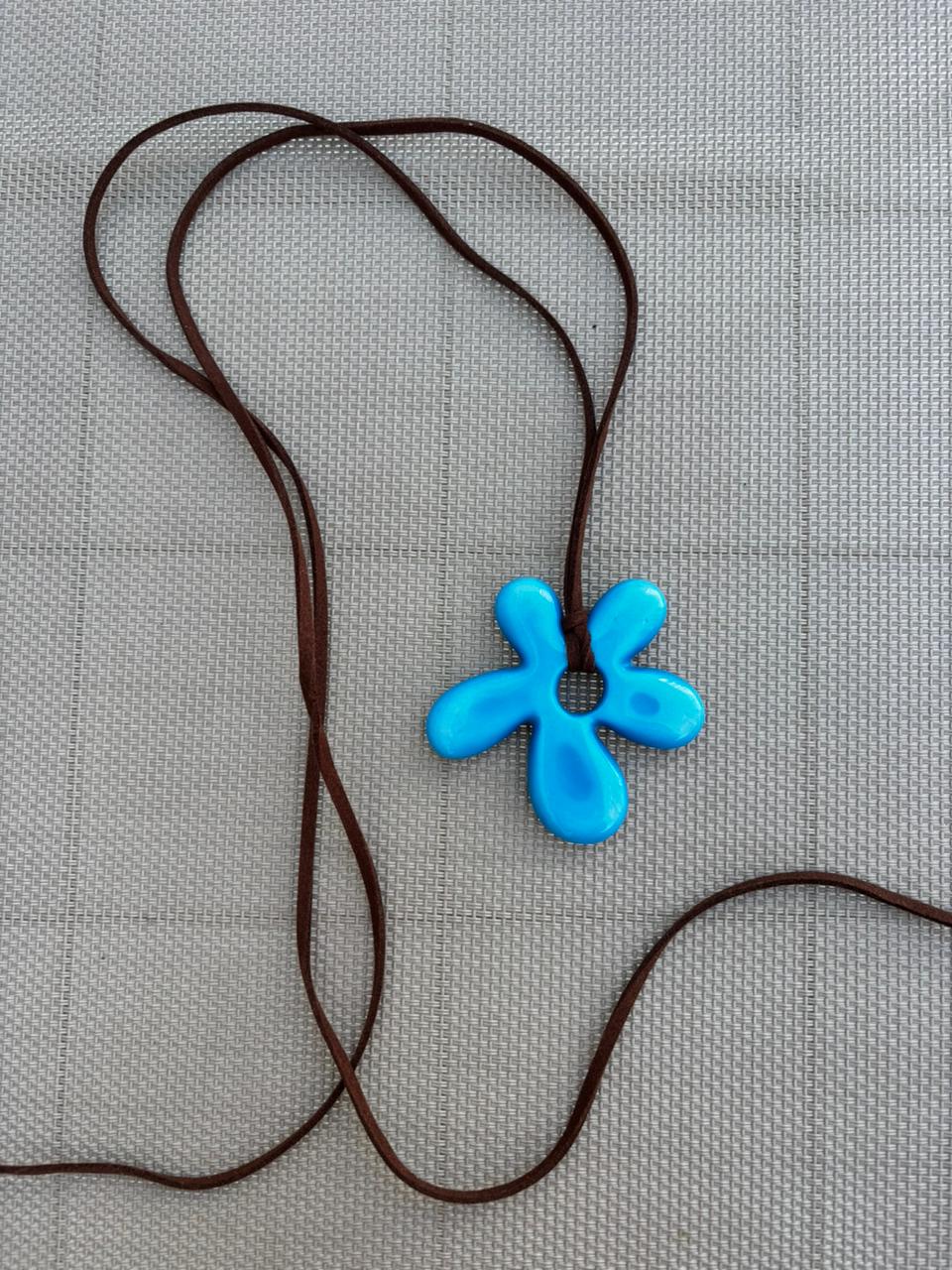 Collar con dije de resina y tira de cuero.